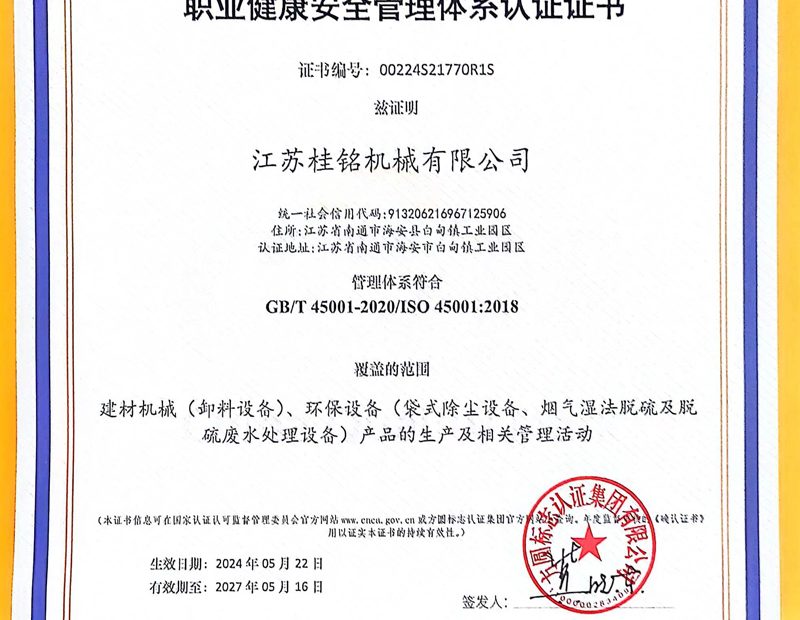 職業(yè)健康安全管理提醒認(rèn)證證書