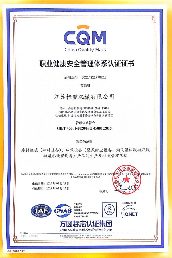 The post 職業(yè)健康安全管理體系認(rèn)證證書 first appeared on 江蘇桂銘機(jī)械有限公司.
